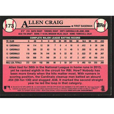 This is a 2014 Topps Archives Allen Craig baseball card. The card is #173 and pictures show condition.