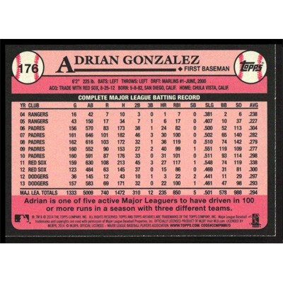 This is a 2014 Topps Archives Adrian Gonzalez baseball card. The card is #176 and pictures show condition.