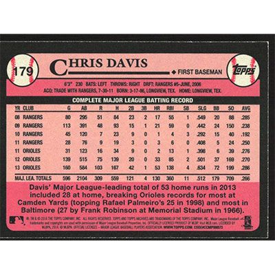 This is a 2014 Topps Archives Chris Davis baseball card. The card is #179 and pictures show condition.