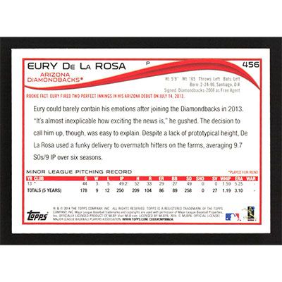 This is a 2014 Topps Green Eury De La Rosa baseball card. The card is #456 and pictures show condition. Team(s): Arizona Diamondbacks Rookie Card (RC)