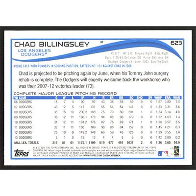 This is a 2014 Topps Green Chad Billingsley baseball card. The card is #623 and pictures show condition.