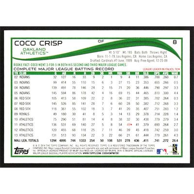 This is a 2014 Topps Green Coco Crisp baseball card. The card is #8 and pictures show condition.