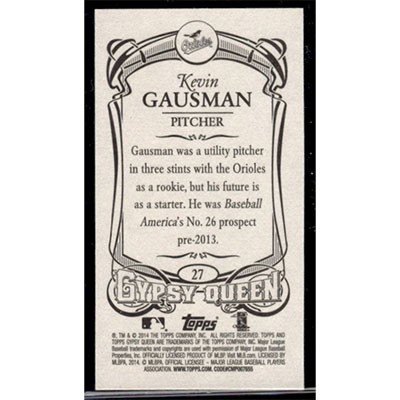 This is a 2014 Topps Gypsy Queen Mini Kevin Gausman baseball card. The card is #27 and pictures show condition.