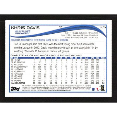 This is a 2014 Topps Mini Khris Davis baseball card. The card is #326 and pictures show condition.