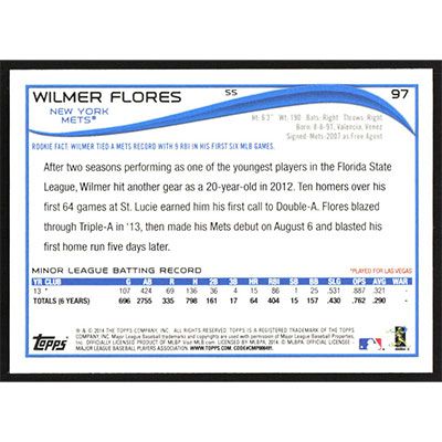 This is a 2014 Topps Opening Day Wilmer Flores baseball card. The card is #97 and pictures show condition.