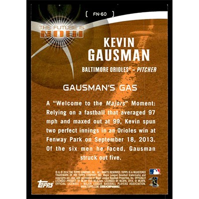 This is a 2014 Topps The Future is Now Kevin Gausman baseball card. The card is #FN-60 and pictures show condition.