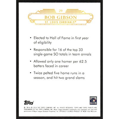 This is a 2014 Topps Tribute Bob Gibson baseball card. The card is #29 and pictures show condition.