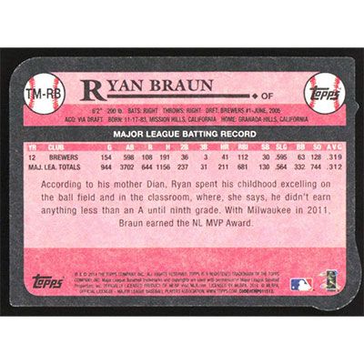 This is a 2014 Topps Update '89 Die Cut Minis Ryan Braun baseball card. The card is #TM-RB and pictures show condition.
