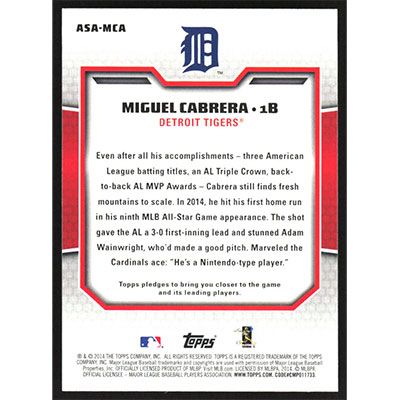 This is a 2014 Topps Update All-Star Access Miguel Cabrera baseball card. The card is #ASA-MCA and pictures show condition.