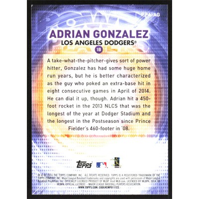 This is a 2014 Topps Update Power Players Adrian Gonzalez baseball card. The card is #PPA-AG and pictures show condition.