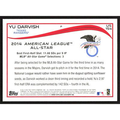 This is a 2014 Topps Update Yu Darvish All-Star baseball card. The card is #US-154 and pictures show condition.