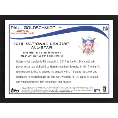 This is a 2014 Topps Update Paul Goldschmidt All-Star baseball card. The card is #US-215 and pictures show condition.