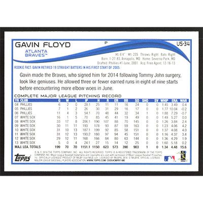 This is a 2014 Topps Update Gavin Floyd baseball card. The card is #US-34 and pictures show condition.