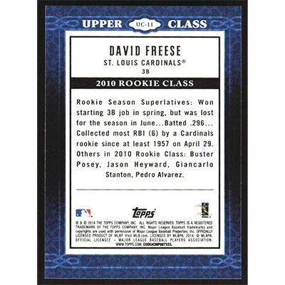 This is a 2014 Topps Upper Class David Freese baseball card. The card is #UC-11 and pictures show condition.