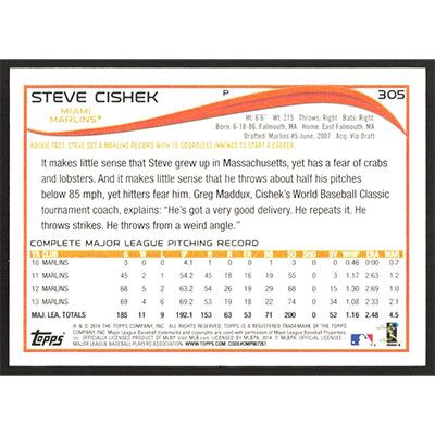 This is a 2014 Topps Yellow Steve Cishek baseball card. The card is #305 and pictures show condition.