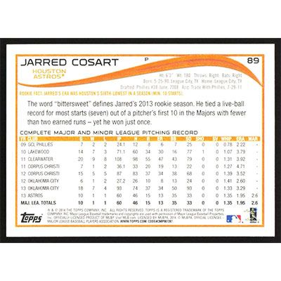 This is a 2014 Topps Yellow Jarred Cosart Future Stars baseball card. The card is #89 and pictures show condition.