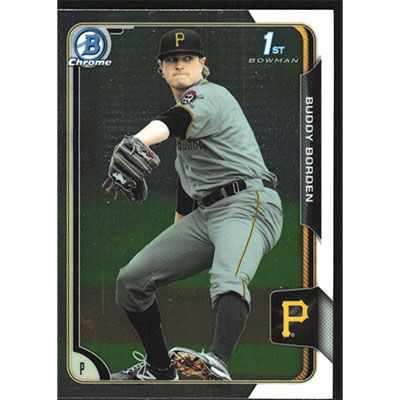 This is a 2015 Bowman Chrome Prospects Buddy Borden baseball card. The card is #BCP63 and pictures show condition.