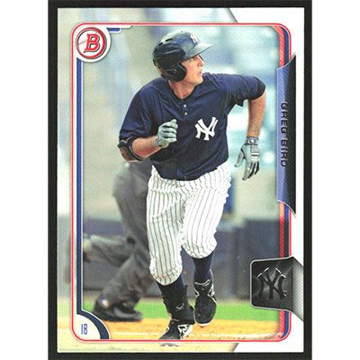 This is a 2015 Bowman Prospects Greg Bird baseball card. The card is #BP74 and pictures show condition.