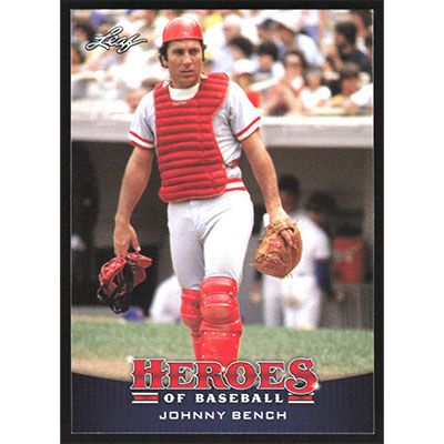 This is a 2015 Leaf Heroes of Baseball Johnny Bench baseball card. The card is #33 and pictures show condition.