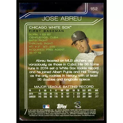 This is a 2015 Stadium Club Jose Abreu baseball card. The card is #152 and pictures show condition.