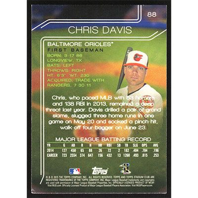 This is a 2015 Stadium Club Chris Davis baseball card. The card is #88 and pictures show condition.