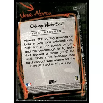 This is a 2015 Stadium Club Contact Sheet Jose Abreu baseball card. The card is #CS-24 and pictures show condition.