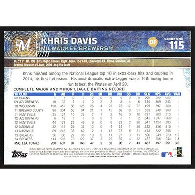 This is a 2015 Topps Khris Davis baseball card. The card is #115 and pictures show condition.