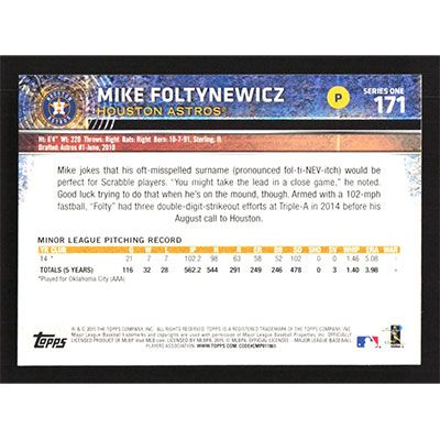 This is a 2015 Topps Mike Foltynewicz baseball card. The card is #171 and pictures show condition.
