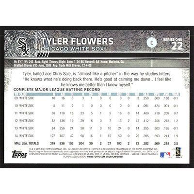 This is a 2015 Topps Tyler Flowers baseball card. The card is #22 and pictures show condition.