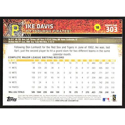 This is a 2015 Topps Ike Davis baseball card. The card is #303 and pictures show condition.