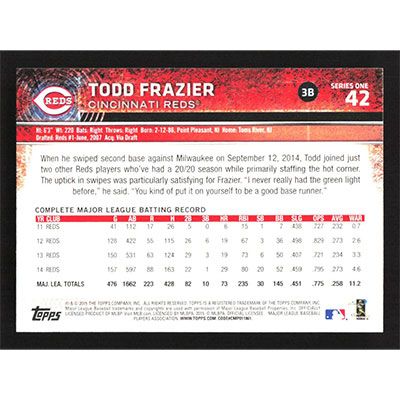 This is a 2015 Topps Todd Frazier baseball card. The card is #42 and pictures show condition.