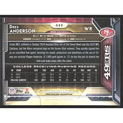 This is a 2015 Topps Dres Anderson football card. The card is #449 and pictures show condition.