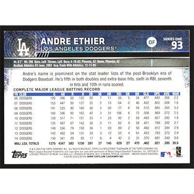 This is a 2015 Topps Andre Ethier baseball card. The card is #93 and pictures show condition.