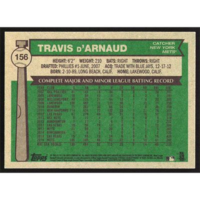 This is a 2015 Topps Archives Travis d'Arnaud baseball card. The card is #156 and pictures show condition.