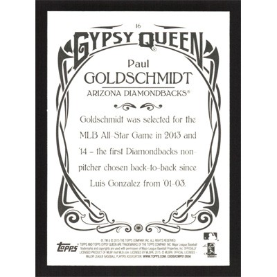 This is a 2015 Topps Gypsy Queen Paul Goldschmidt baseball card. The card is #16 and pictures show condition.