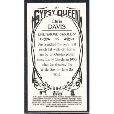 This is a 2015 Topps Gypsy Queen Mini Chris Davis baseball card. The card is #137 and pictures show condition.