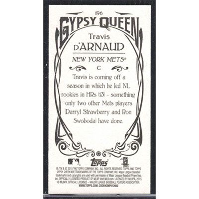 This is a 2015 Topps Gypsy Queen Mini Travis d'Arnaud baseball card. The card is #196 and pictures show condition.