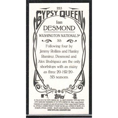 This is a 2015 Topps Gypsy Queen Mini Ian Desmond baseball card. The card is #223 and pictures show condition.