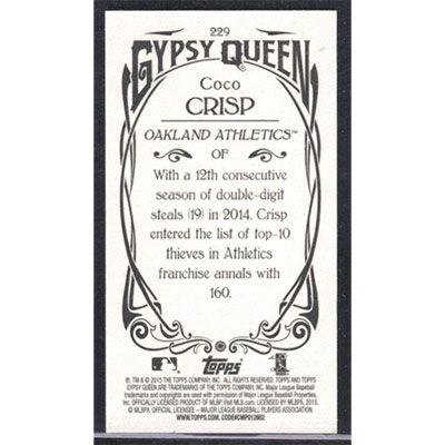 This is a 2015 Topps Gypsy Queen Mini Coco Crisp baseball card. The card is #229 and pictures show condition.