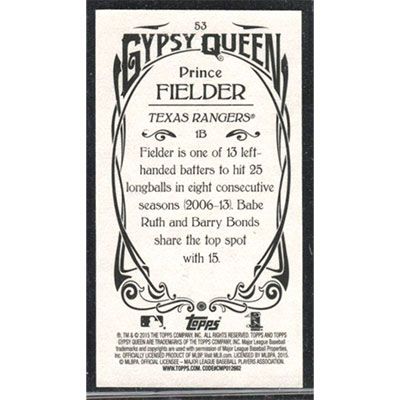 This is a 2015 Topps Gypsy Queen Mini Prince Fielder baseball card. The card is #53 and pictures show condition.