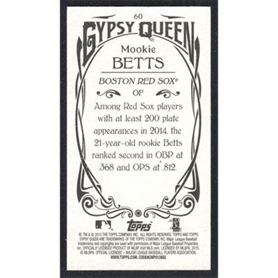 This is a 2015 Topps Gypsy Queen Mini Mookie Betts baseball card. The card is #60 and pictures show condition.