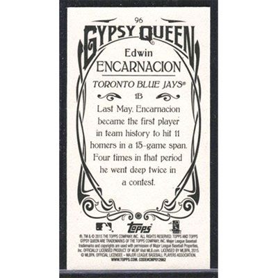 This is a 2015 Topps Gypsy Queen Mini Edwin Encarnacion baseball card. The card is #96 and pictures show condition.