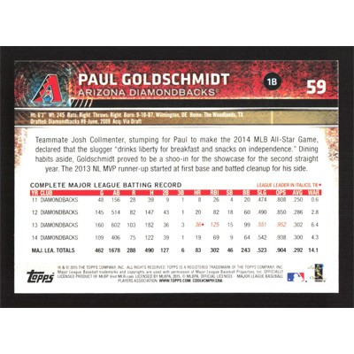 This is a 2015 Topps Opening Day Paul Goldschmidt baseball card. The card is #59 and pictures show condition.