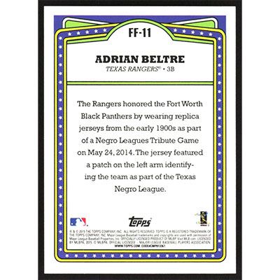 This is a 2015 Topps Opening Day Franchise Flashbacks Adrian Beltre baseball card. The card is #FF-11 and pictures show condition. Team(s): Texas Rangers