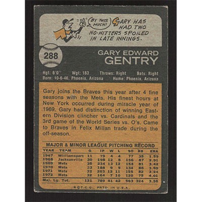 This is a 2015 Topps Original Buyback 1973 Gary Gentry baseball card. The card is #288 and pictures show condition.