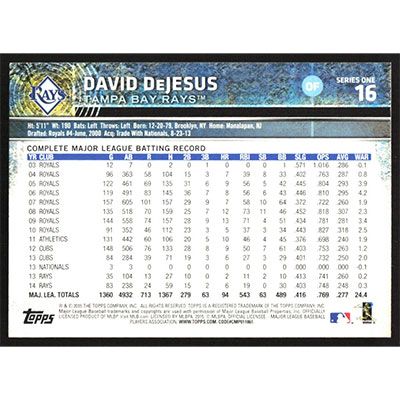 This is a 2015 Topps Rainbow Foil David DeJesus baseball card. The card is #16 and pictures show condition.