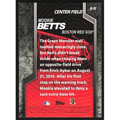 This is a 2015 Topps Robbed Mookie Betts baseball card. The card is #R-15 and pictures show condition.