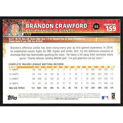 This is a 2015 Topps Brandon Crawford baseball card. The card is #SFG-7 and pictures show condition.