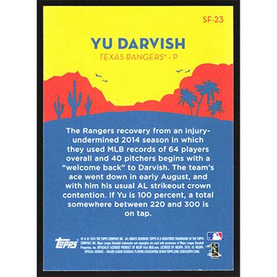 This is a 2015 Topps Spring Fever Yu Darvish baseball card. The card is #SF-23 and pictures show condition.