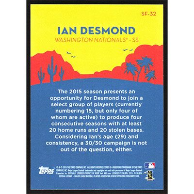This is a 2015 Topps Spring Fever Ian Desmond baseball card. The card is #SF-32 and pictures show condition.